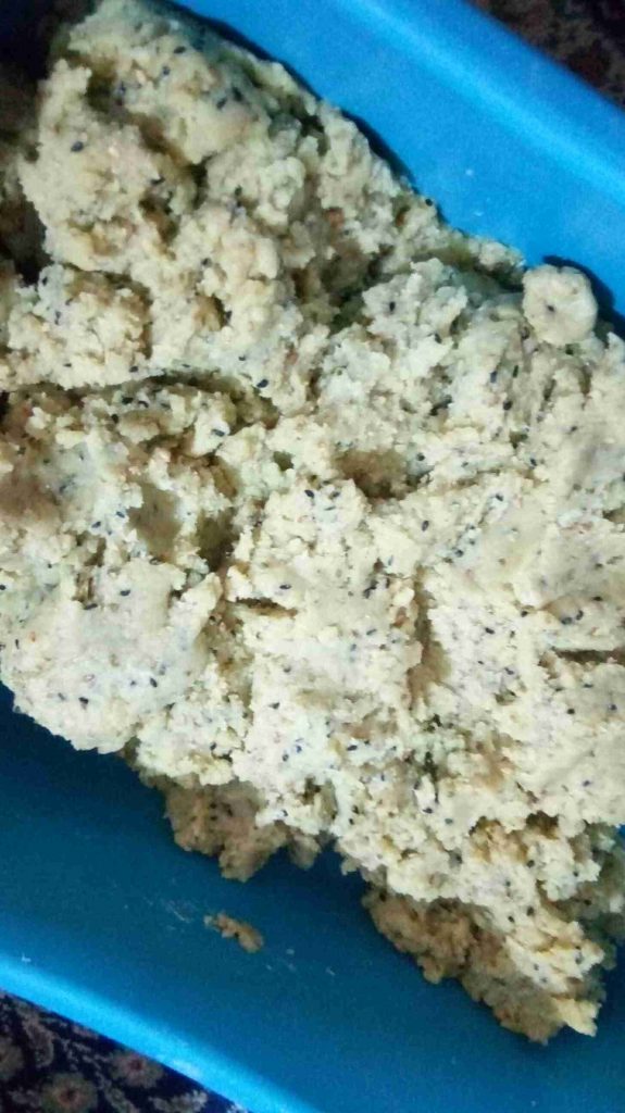 نضع الطحين والخميره واليانسون والشومر والقزحه والسمسم ونخلطهم جيدا ثم نضيف الحليب قليلا قليلا ونبسبس حتى تصبح العجينه متماسكه وتتشكل نتركه ساعه لترتاح ،،