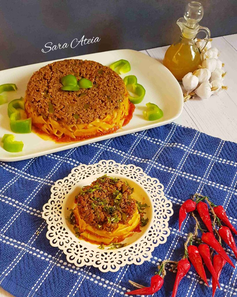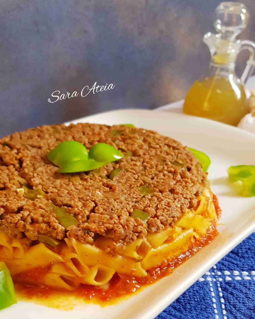 طاجن المكرونة باللحمة المفرومة المشهور جدا فى محلات الكشرى المصريه