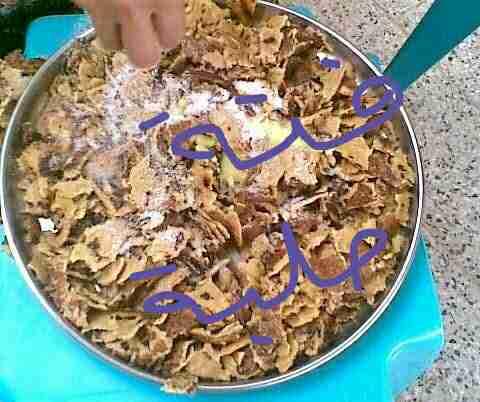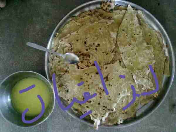 فتة حلبة: يقطع خبز الشراك ويفت بالسمن والسكر ويضاف إليه قليل من الماء المغلي مع حبوب الحلبه ،،،،،