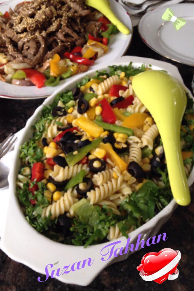 - كميات متساويه من معكرونه مسلوقه الشكل حسب رغبتك