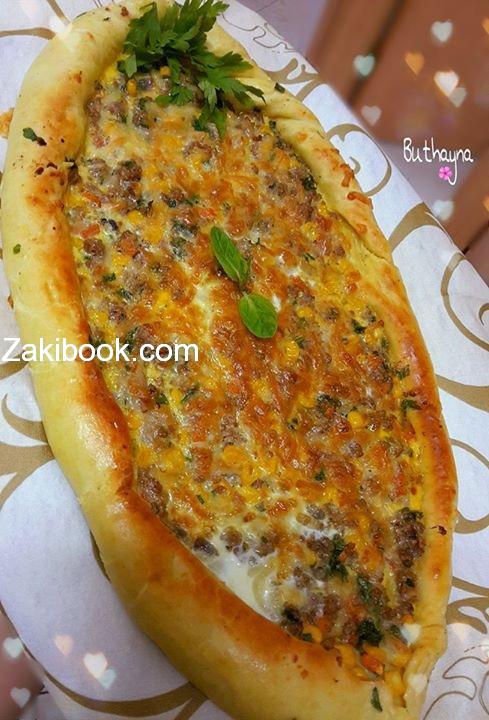 بصلة عالنار بدبلها مع شوية زيت زيتون وبضيف عليها لحمة مفرومة بخليها لحتى تتسبك وتنشف ميتها بحط رشة ملح وفلفل اسود وبهار مشكل وبتركها تبرد وبحط معها بندورة مقطعة وممكن ذرة او بدون وبقدونس مفروم بحطها على العجينة وبرش عليها جبنة موزيريلا وبخفق بيضتين مع رشة ملح وفلفل اسود بدهن اطراف العجينة فيهم والبقية بوزعو على الحشوة وبدخلها الفرن