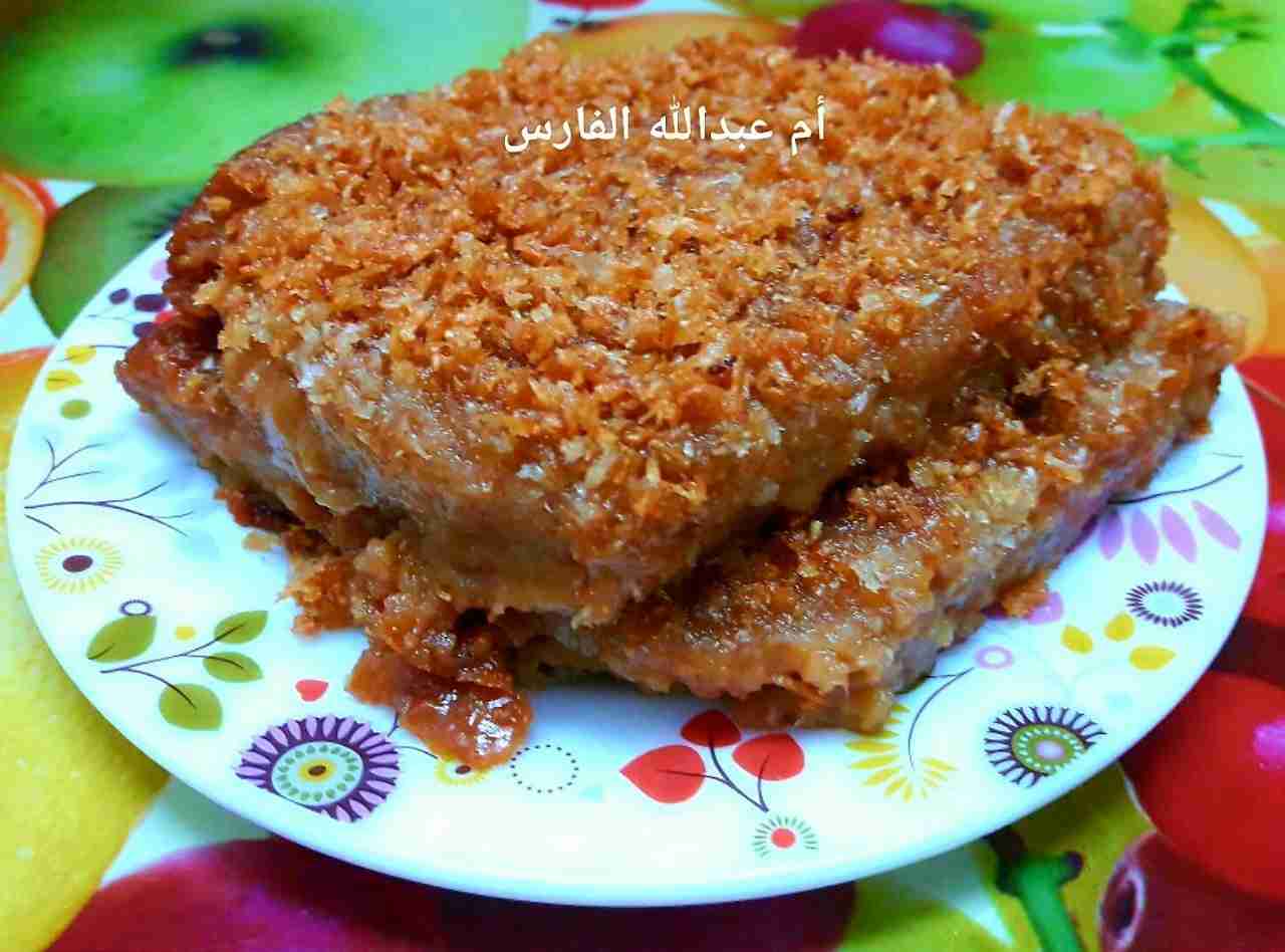 ثم تُقلب في صينيه و يُقَلب المبروش بالسكين