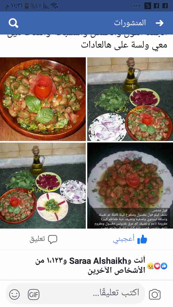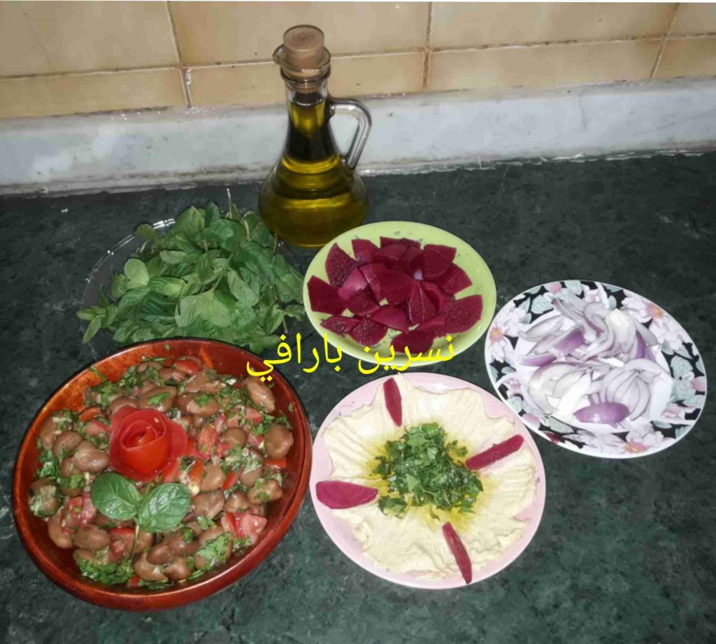 فتات وفول وحمص ومسبحة وفلافل وسلطة بطاطا إن شاء الله تعجبكم