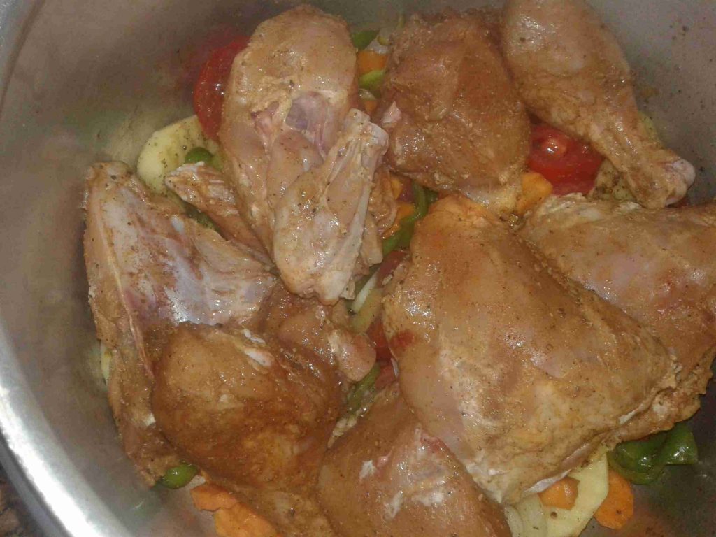 طبعا بنحضر كل شي مسبقا حتى ما نتكركب بنتبل الدجاج قبل بفتره ليله او اربع ساعات حتى لو انسيتي ما تبلتيهم عادي بس الافضل يتبلوا مسبقا وطبعا بنقطع الخضار مسبقا وبنجهزها