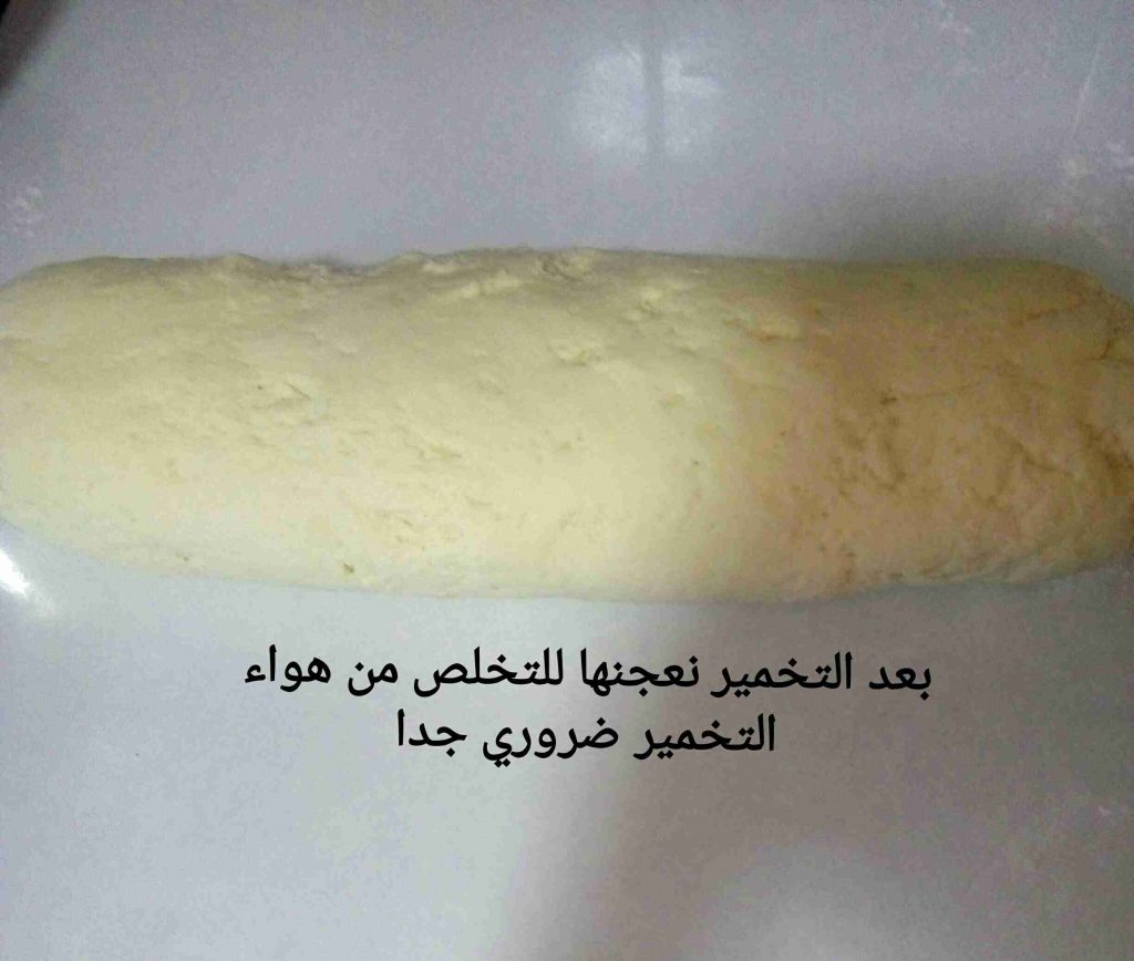—بتبدأي بعد التخمير تتخلصي من هواء التخمير لااازم عجنيها خمس دقائق قبل الفرد.