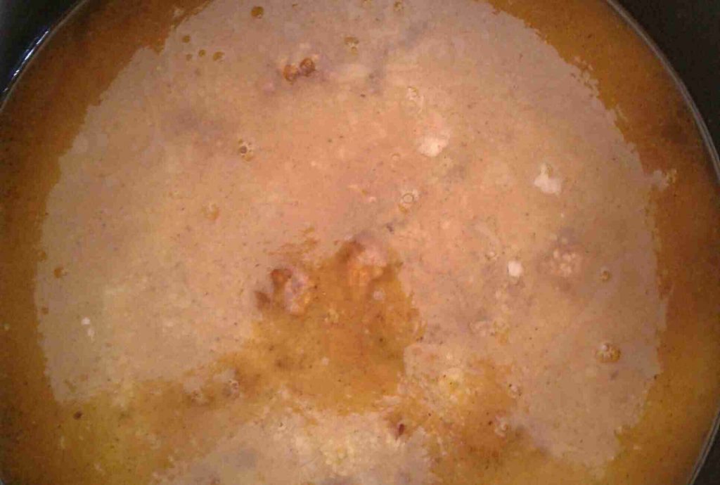– نضيف المرق فوق الأرز من الطرف حتى نحافظ على المنكهات المضافة للأرز في مكانها .