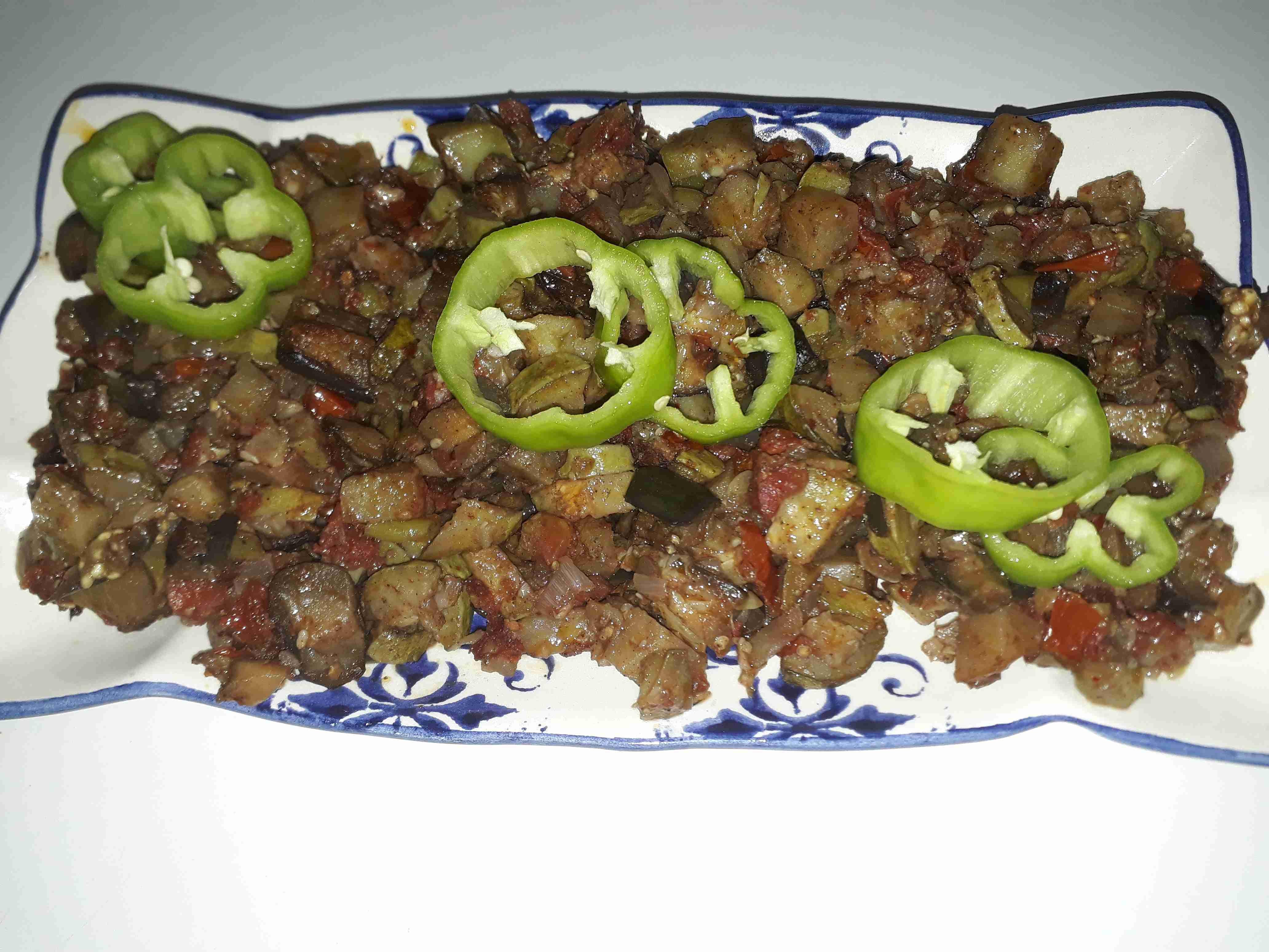 فرمت كل الخضار فرم متوسط لاناعم كتير ولاخشن حطيتلا ملح والفلفل والفليفلةواللحمة وحركتن سوا هلق انتو بتحسنو تحطوا بصينية وعالفرن بس انا بفضل هالطريقة اسهل واسرع بعد ماخلطت المكونات كلا سوا جبت طنجرة وحطيتن فيا وحطيتا عالغاز وتركتا تستوي نص سوية وبعد ماشفتا بلشت تستوي نقلتا عصينية وعالفرن شغلت من فوق وتحت لحتى تكمل سواا وتتحمر وهي اطيب شي فيا انو تتحمر اذا عندكن فليفلة خضرا حارة بتحسنو تحطو كم قرن عوجه الصينية مع عمل شقوق للفليفة مشان تنكهة الاكلة وتعطيا شوية حدودية واذا مافي مو ضروري انا ماكان عندي فليفلة حارة حطيت عوجه الخضار كم معلقة سمنة لحتى ماتنشف اخدت نص ساعة بالفرن طالعتا وسكبتا وقدمتا بهالشكل وهي اكلتي كانت كتيررطيبة بنصحكن تجربوا والاهم من هيك انو فيا خضرا ومفيدة كتير وخاصة لاهل الريجيم الله يبعدنا عنن ههههه