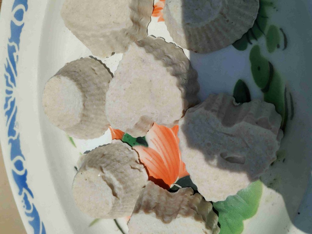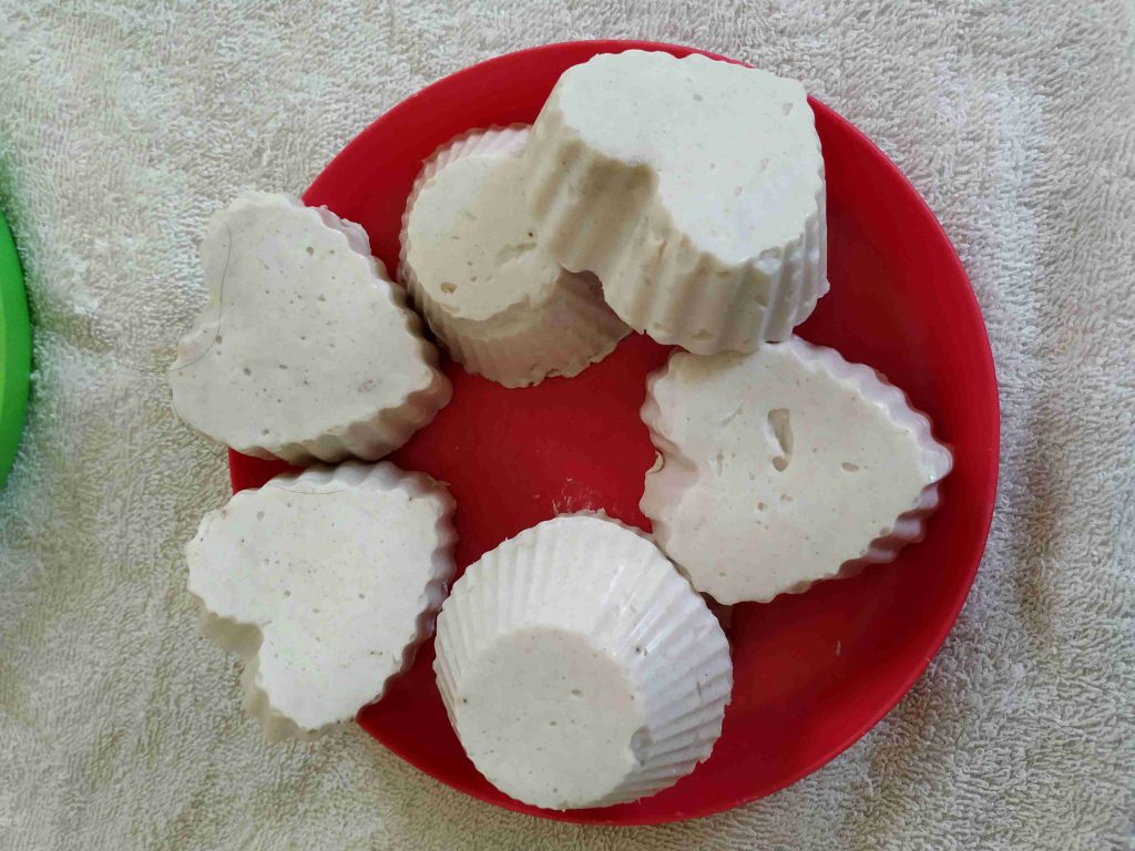 حطيتها في قوالب السيلكون وإلى الفريزر لمدة من ثلاث إلى اربع ساعات طلعتها من الفريزر و شلتها من القوالب وحطيتها في صحن وإلى السطوح تضل اربع ايام حتى تنشف وتكون جاهزة للاستخدام.