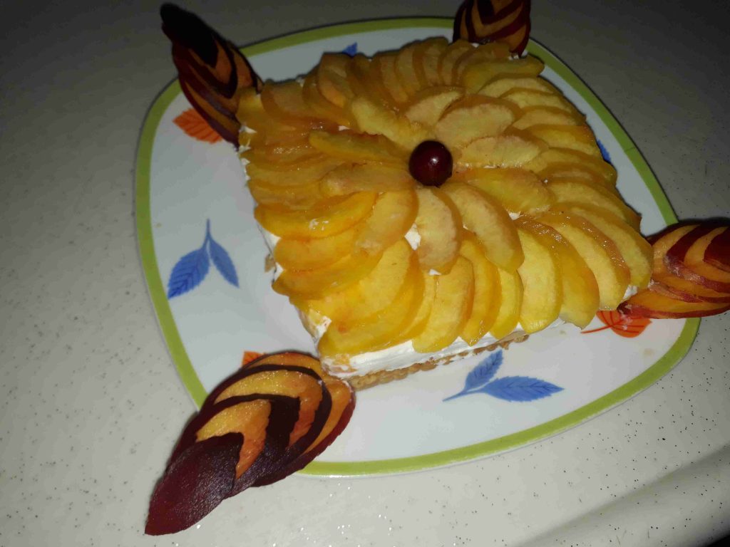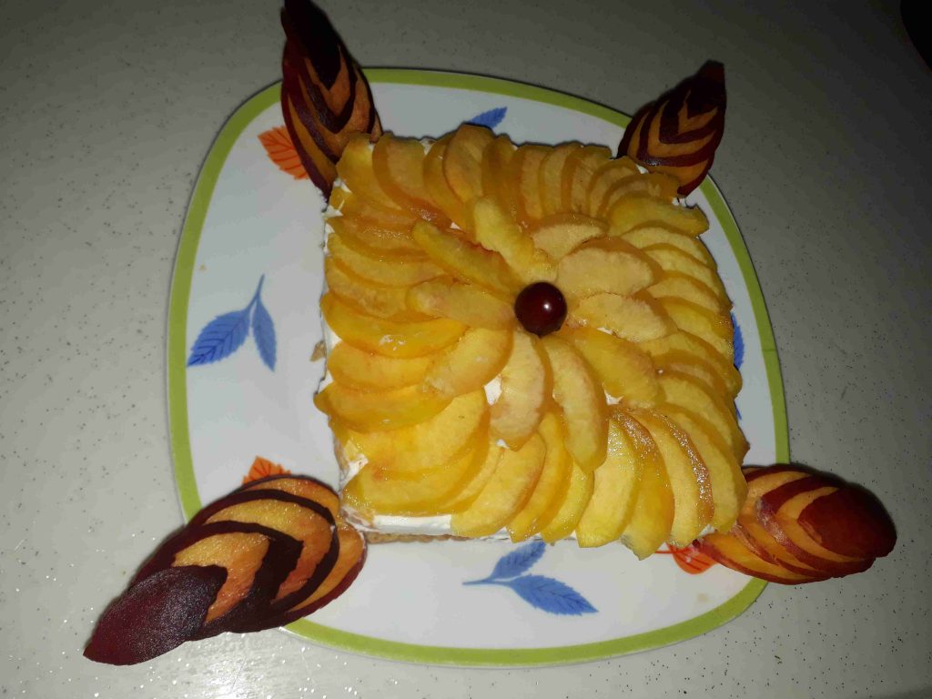 طالعتا وكنت عاملة الخوخ شرايح بالطول صفيتن وزينتا بهالشكل