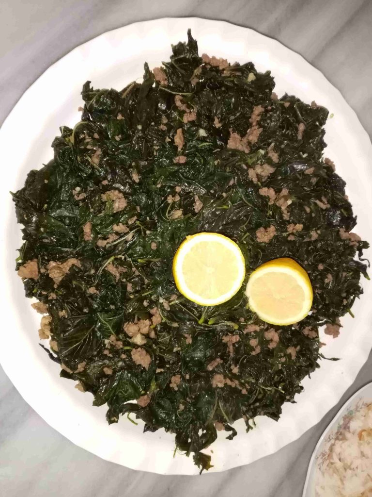 نقوم بتغسيل الملوخيه جيدا وفي هذه الأثناء نضع الزيت في الطنجره ووضع الحمه المفروم وبعد تقليب ونضوج اللحمه بنظيف الملوخيه ونقلبها ووضع نص كاسه ماء ونخفض حراره النار ووضع الثوم المهروس والملح ونتركها نص ساعه او اكتر شوي لحد الاستواء تقدم مع أرز بشعيريه والليمون…… انا حبيت اظيف اللحمه المفرومه حيله للولادي لأنهم مابياكلو اللحمه ابدا بحب اخدعهم وضيف اللحمه مفرومه ناعمه وهيك بياكلوها وبيستفيدو منها