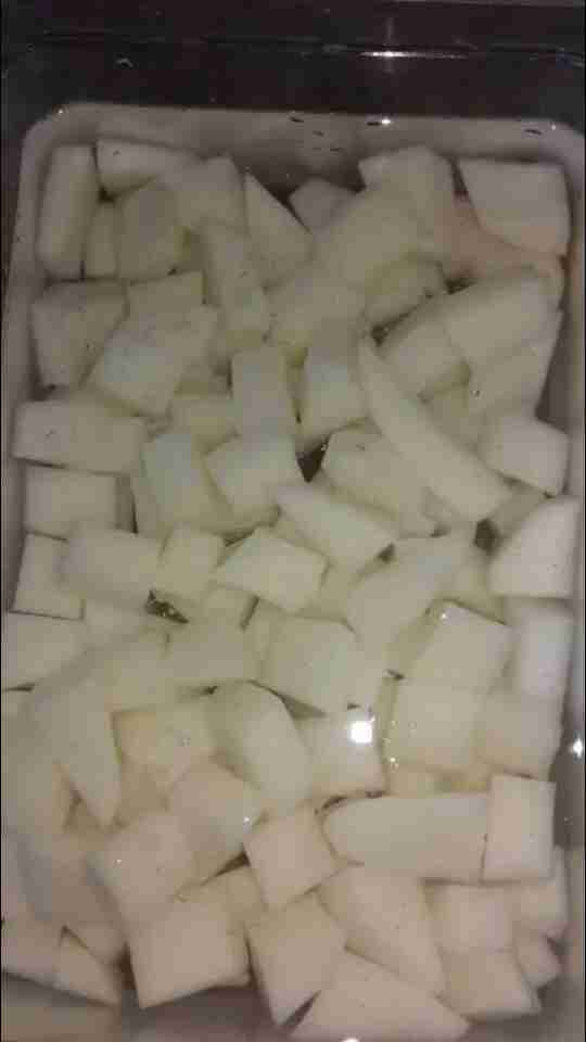 يقشر البطاطا ويقطع مكعبات متوسطة