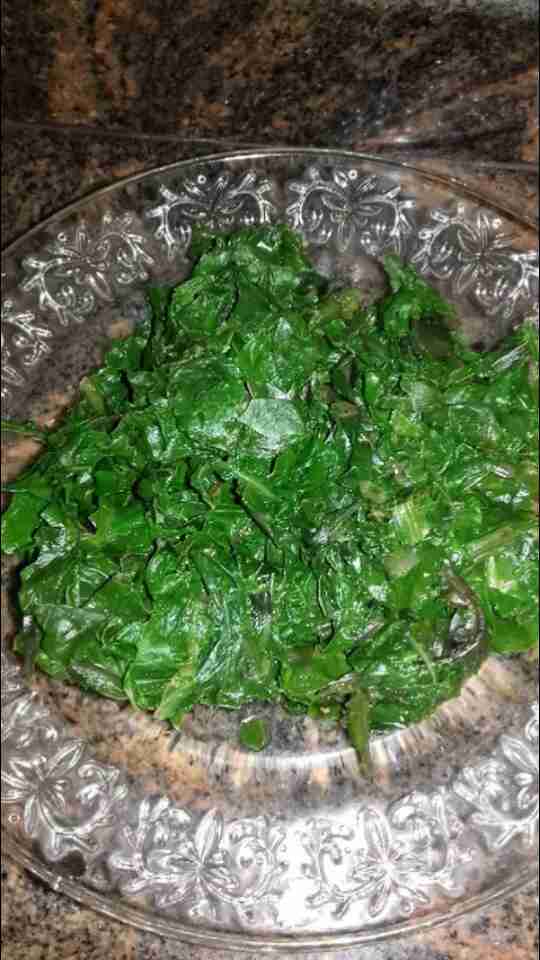 تغسل اوراق السلق وتقطع قطعا صغيرة