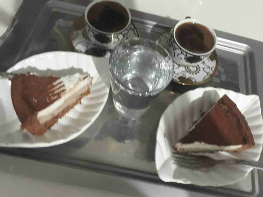 طالعتا ورشيت عليها كاكاو وقدمتا جنب فنجان قهوة