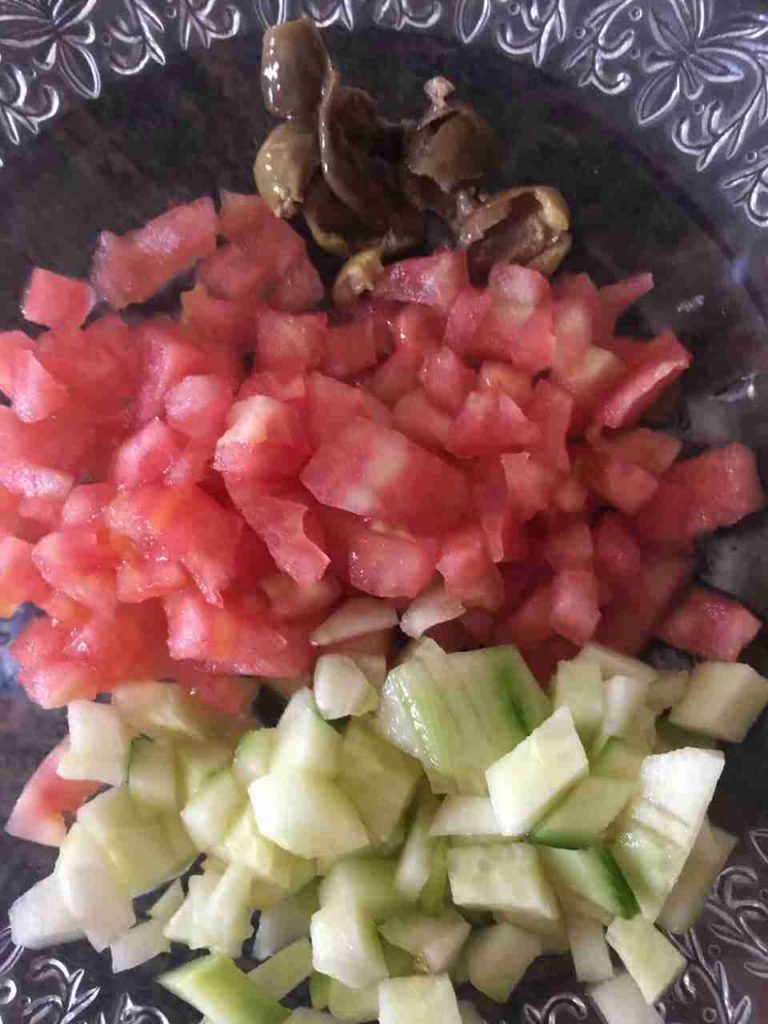 تغسل الخضروات جيدا وتقطع مكعبات صغيرة