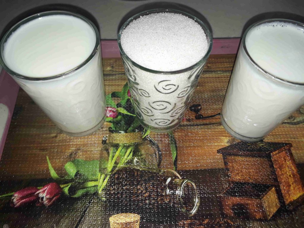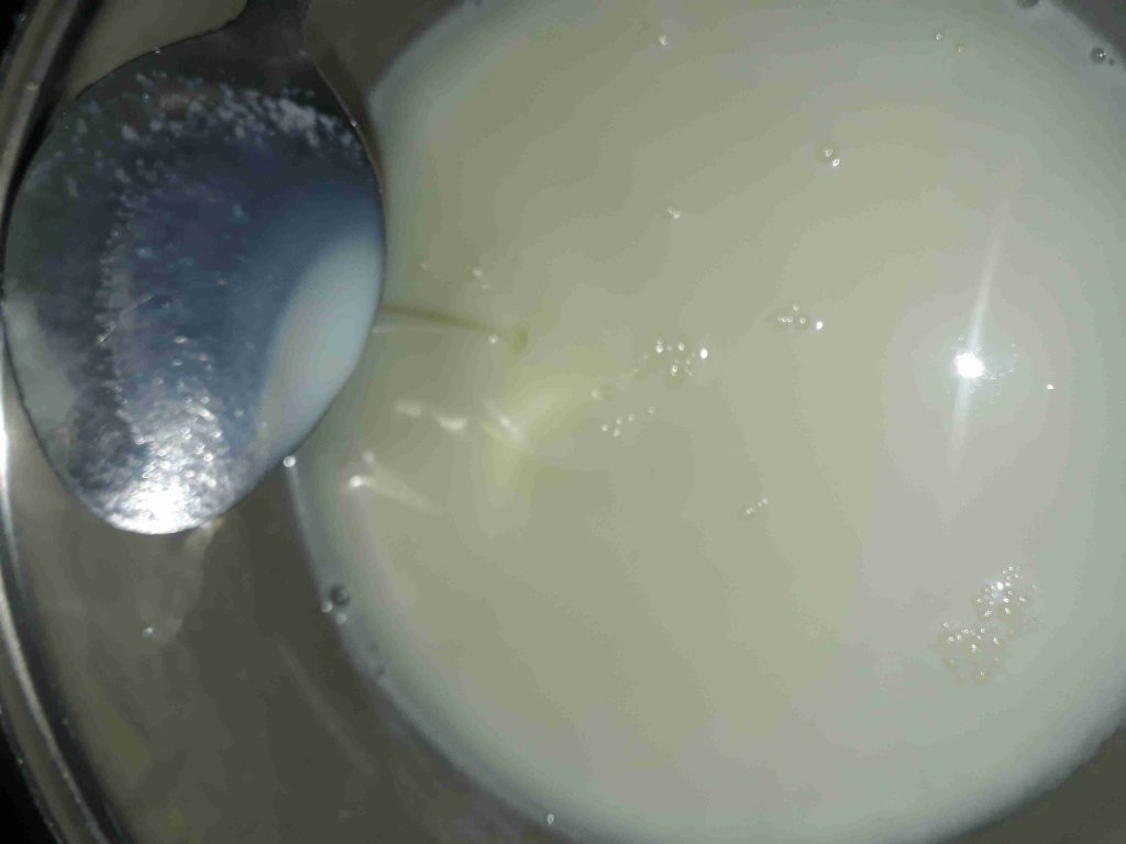 حطيت بطنجرة السكر والحليب وخلطتن منيح لداب السكر شوي