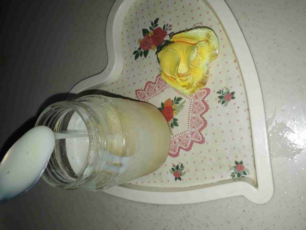بس بلش يغلي وطيت تحتو وانا ايدي فيو عم احركو لحتى يتعقد