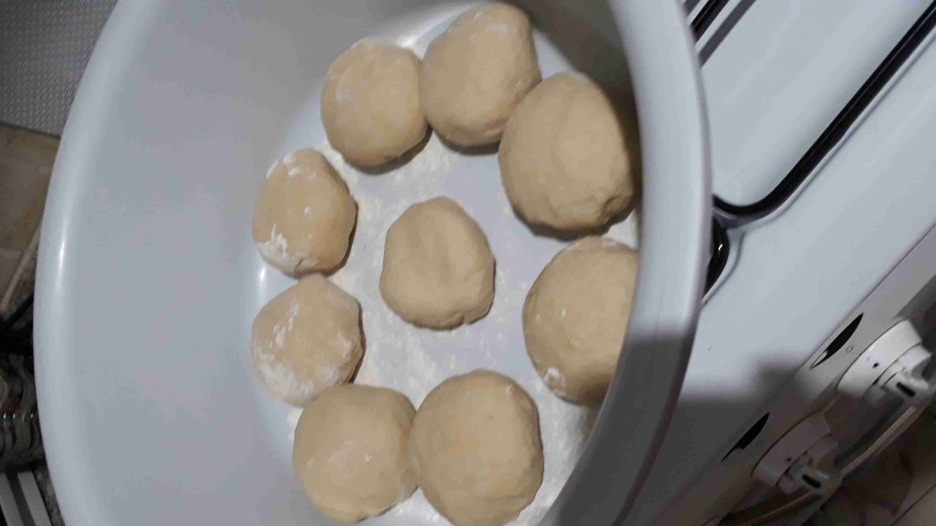 العجينة تعجن بالماء للحصول على عجينة طرية غير لاصقة تقطع وتترك لترتاح نصف ساعة