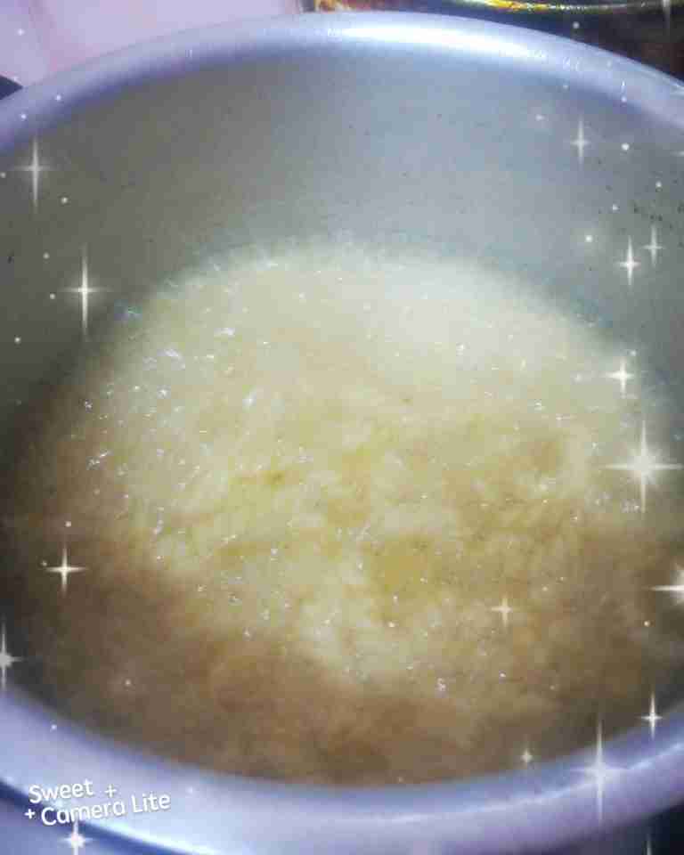 بعد سلقها نتركها تتصافى من المي ونضع الزيت على الغاز