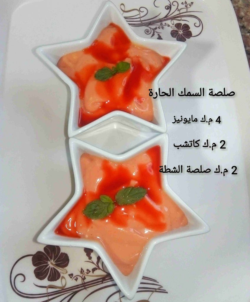يقدم ساخن طبعا مع السلطات والشوربة والصلصة الحارة يلي مكتوبة بالصور طريقتها وهيه من الذ ما يقدم مع السمك.
