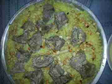 نقع اقراص الجميد بالماء لمدة ثلاث ساعات ونقع الرز ثم نضع اللحم في طنجرة وعليه ماء ونضع عليه ورق غار وهيل وبهارات نغطي الطنجرة لحتى الاستواء ثم نصفي لبن الجميد ونضع عليه من مرق اللحمة ونتركه يغلي على الغاز ثم نفلفل الرز بالزيت والملح والماء الساخن ونضع عليه الكركم علشان يتلون الرز ثم نحضر سدر ونضع عليه خبز الشراك ونشربه بلبن الجميد ثم نضع فوقه اللحمه المستوية والصنوبر المقلي واللوز ونشربه بلبن الجميد في ناس بحطوا بقدونس انا مابحبه وصحة وعافية للجميع