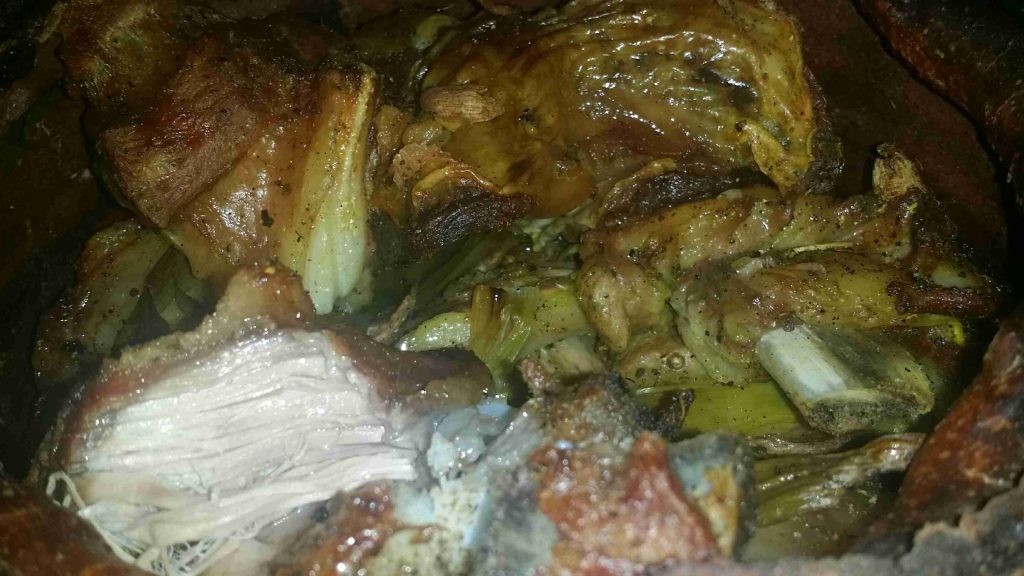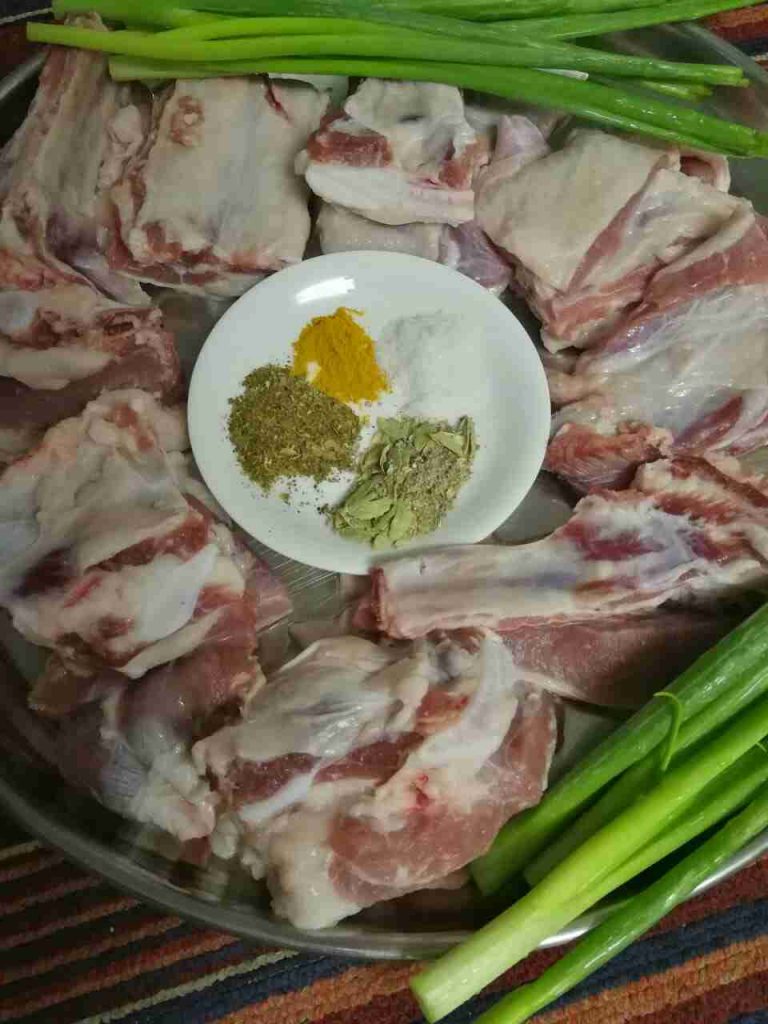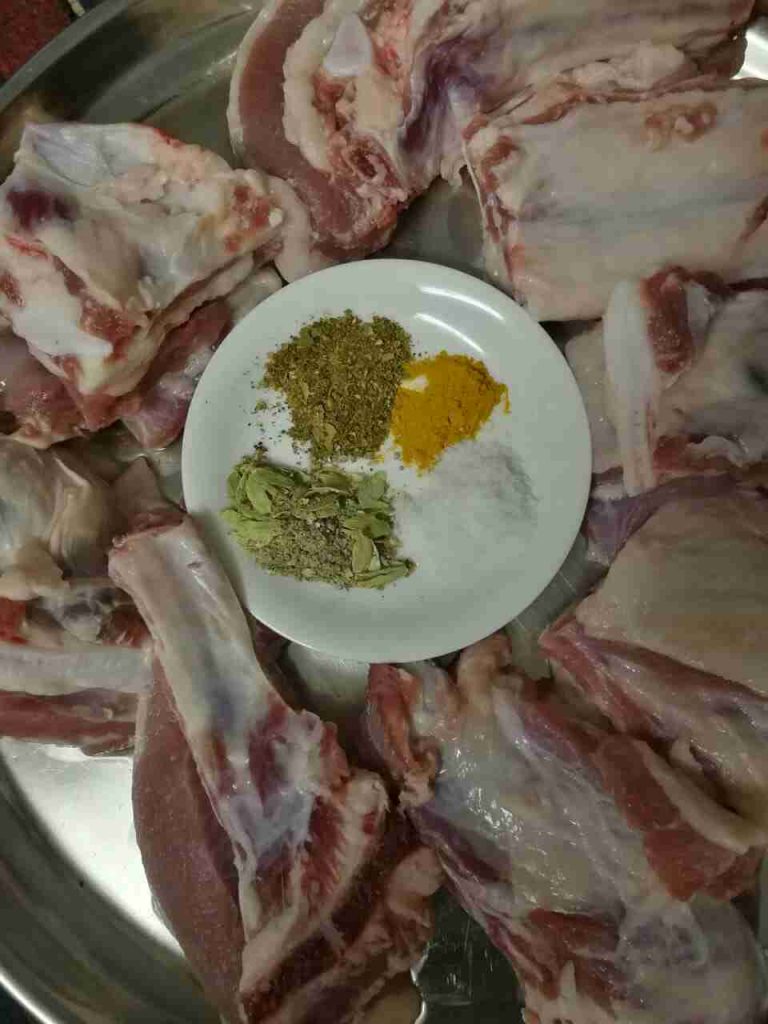 نغسل اللحمة ونبهرها ونحطها بقدر الفخار احنا نسميها برمة ونتركة لمدة ساعة يتشرب نكهة البهار وبهاري اللي تبلت به ساويته باالبيت