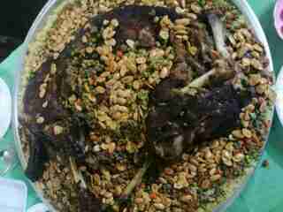 غسل الضلع جيدا ننقعه بالبهارات والخل واللبن والقرفة والملح والفلفل والليمون يوم كامل ثم نفلفل الفريكة نضع زيت بطنجرة ونضع البصل المقطع ثم نضع الفريكة ونقلبها ثم نضع المرق فوقها ونضع الملح والفلفل وبعد الاستواء نحشي الضلع ثم نغطيه بالقصدير ونضعه بصينية ونضعه بالفرن 3 ساعات ثم نحمره بالشوايه ونضع باقي الفريكة بسدر ونضع فوقها الضلع المشوي ونزينة باللوز والصنوبر وصحة وعافية