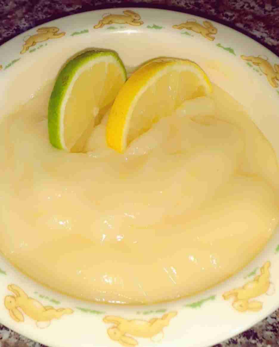 ونضيف النشا ونخلطه بالليمون حتى يذوب تماماً.
