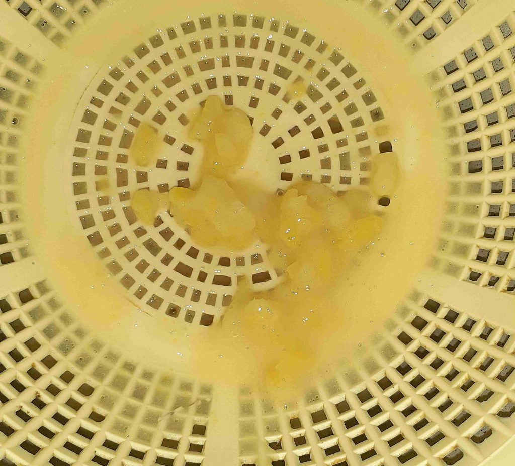 نصفي الليمون بمصفاية خشنة حتى نزيل قطع الليمون اللي مانطحنت
