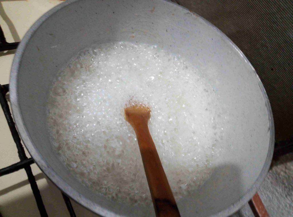 الليمونه مع بعض وبنحرك منيح وبنحطن ع نار عاليه ليغلو وبعدها بنهدي النار وبنخلي عالنار ليصير لونها ذهبي بنفردها بصنيه حيكون قوامها شبه سائله بنحرك بالمعلقه ليتقل قوامها وأهم شي لاتمسكيها بيدك لحتى تتحملي حرارتها بإيدك بتشكيلها وبتضبيها بأكياس لوقت الاستعمال