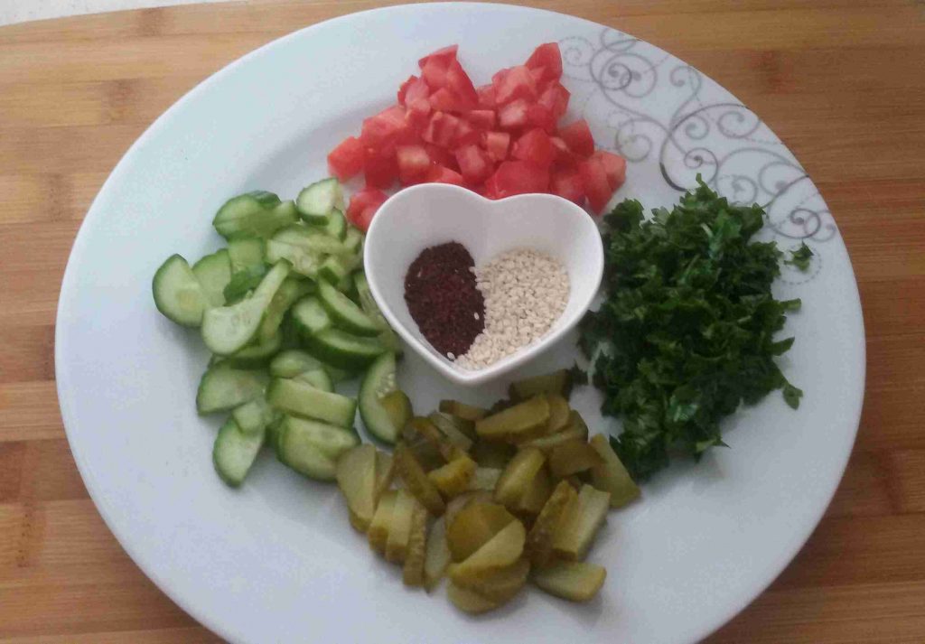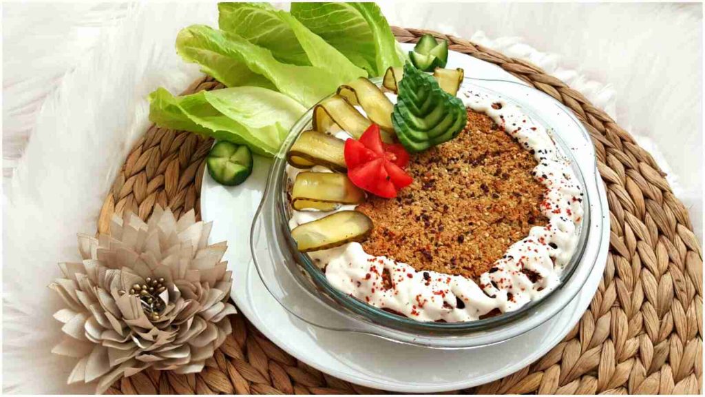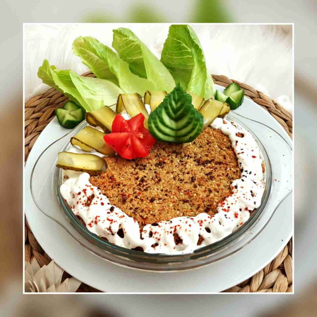 ♢ أول شي منطحن الحمص مع الخضار عالناااعم على ماكينة الكبة وبعدا منضيف عليهم البهارات والسمسم و(الخبز ودبس الفليفلة لو حبينا) ولو لقينا الخليط ناشف زيادة ممكن نرش عليه شوية مي ونرطبو
