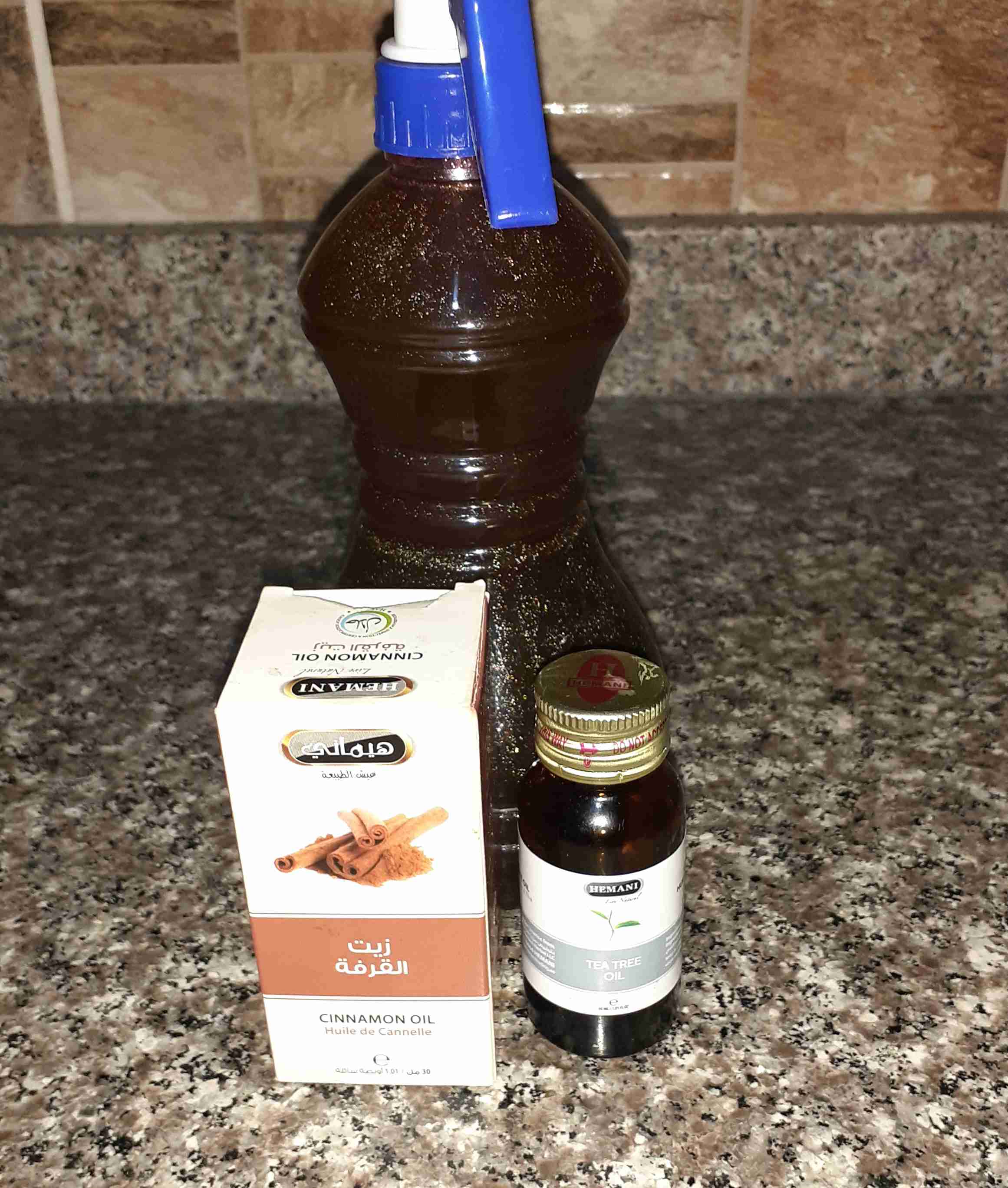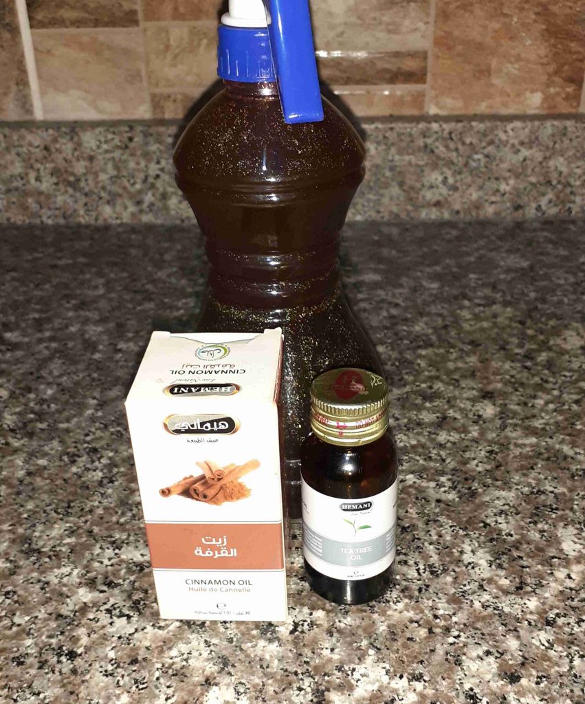ثاني يوم بنصفي الخليط ونضيف زيت الشاي وزيت القرفة