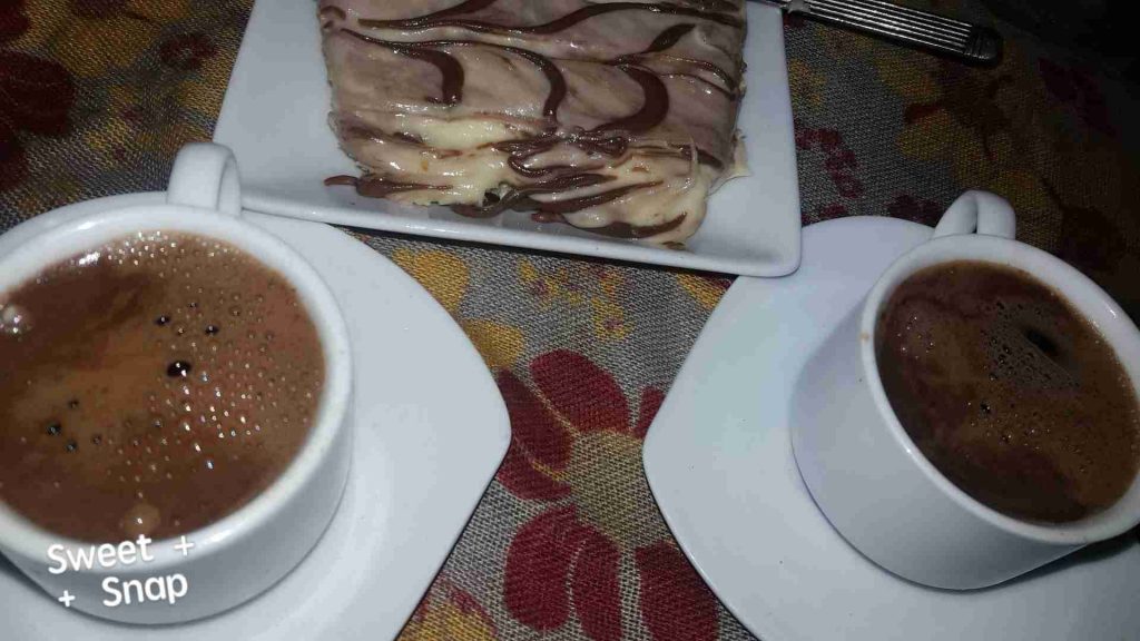 السلام عليكم ورحمة الله وبركاته كيفكم يا حلوين هي طريقة حلو بارد سهل وسريع بشهيي بسم الله اول اشي بخفق الكريما مع المي والحليب ومعلقتين سكر بس تكثف الكريما بنزل علبه قشطه ومغلف كريم الكرميل البودرة وبخفقهن منيح برجع احط علبة القشطه تاني وبخفق وبجهز صينيه حجم وسط وبحل بكيت نسكافيه بكاسه مي وببلش اغطس بسكوت واصف بصينيه بحط كريما وبرجع اغطس البسكوت وبرجع اصف فوق الكريما واخر شي بضيف كميت الكريما وبخلي منها تلات معالق مشان اضيف عليهم الكاكاو واخطط وازين فيهم بخلي بلبراد لمدت ساعتين وتقدم مع القهوة اطيب اشي صحه وهناا يارب تعجبكمم حبيباتي