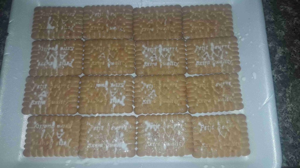 بخفق الكريما مع الحليب الجاف مع كاستين ونص مي باردة جداا وبس تكثف الكريما بحط علبة القشطه وبحركخا منيح بجهز الحليب والموز والبسكوت بصير اعمل طبقه بسكوت طبقه كريما بعدين بس طبقه وحدة موز وبعدين بسكوت وكريما بزينها كيف بددي انا حطيت بسكوت وسكر كراميل جوز الهند شوي صحه وهنا يارب