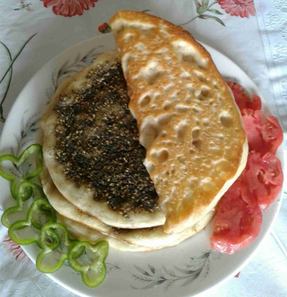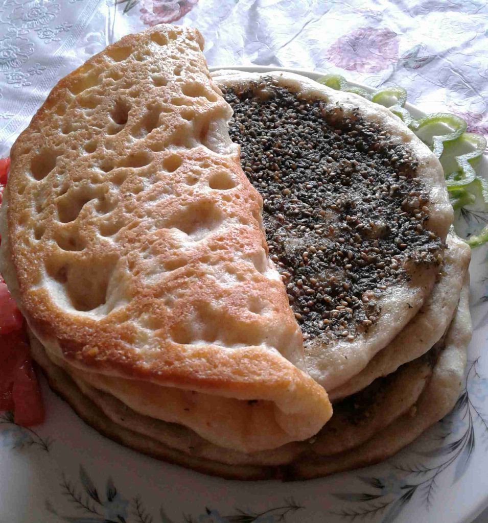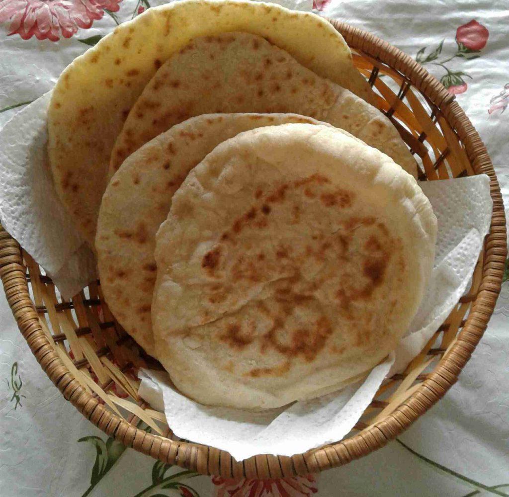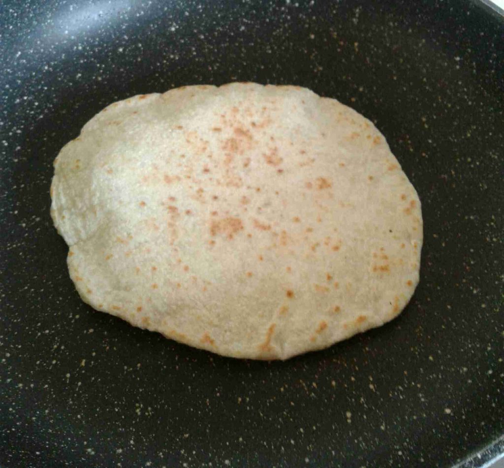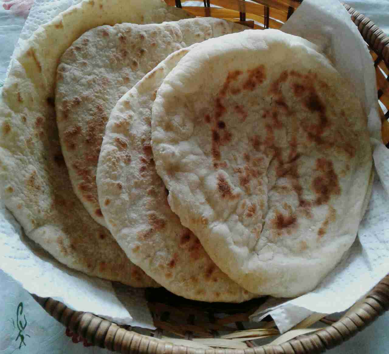 – نسخن مقلاة على نار عالية ونضع فيها الرغيف ، وعندما يبدأ بالإنتفاخ نخفض النار إلى الوسط وننتظر حتى ينتفخ بشكل كامل ، ثم نقلبه على الجهة الأخرى ونراقبه حتى يتحمر ، ثم نرفعه ونغطيه.