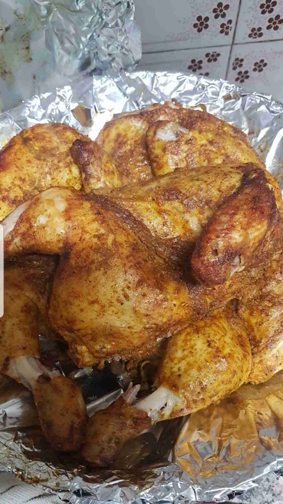 بنسكر الطنجره بطبقتين من القصدير وبنعمل شويه تجويف وبنعمل فتحات بالقصدير بالسكينه ونضع الجاج وبنغطيه بطبقه من القصدير وع الفرن لمده ساعه او ساعه وربع حسب الفرن وصحه وهنا