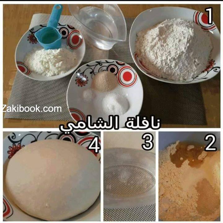 4- تعجن حتى تنعم مع غمس اليد بالماء اثناء العجن حتى تنعم وتغطى وتخمر