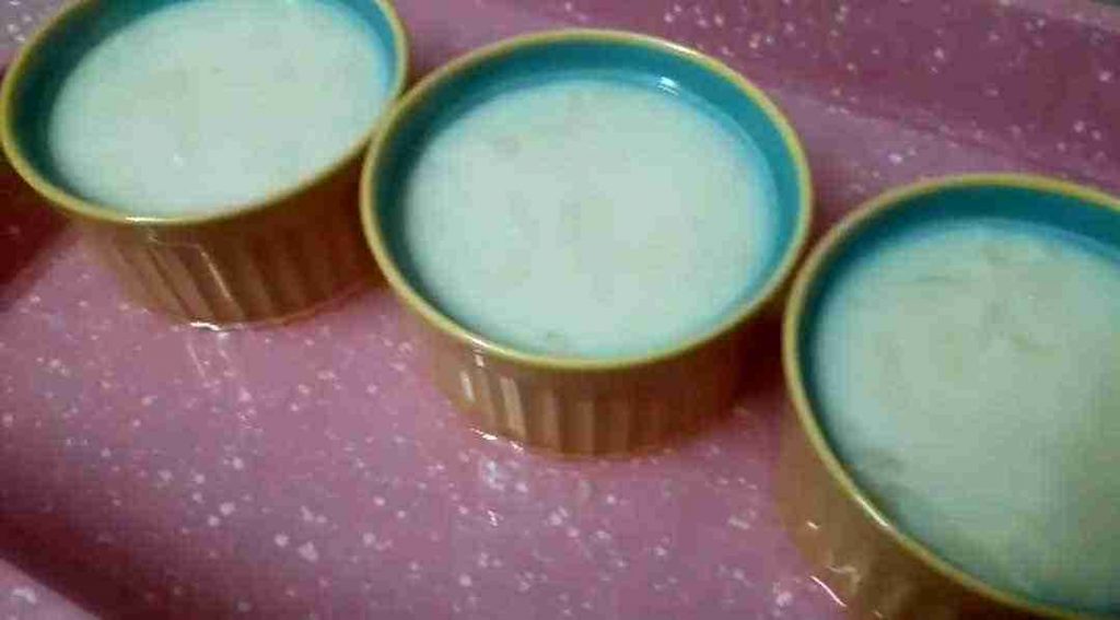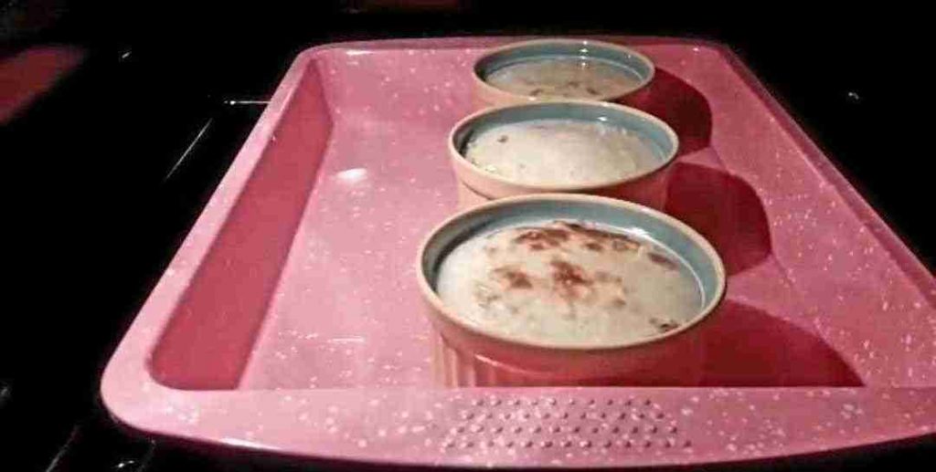 (عدا الزبده و القشطه و المبروش) و نضعهم عالنار حتى تبدي تثكاثف.. ثم نضيف تقريباً ملعقة زبده و علبة قشطه و نخلطهم جيداً.. ثم نرفعها عن النار و نسكبها في قوالب تتحمل حرارة الفرن. و نرش ع الوجه ملعقة طعام مبروش جوز الهند خشن لكل قالب و نخلطه ب شوكه🍴 و نضع القوالب في صينيه و نسكب في الصينيه كوب ماء ساخن و ندخلها فرن ساخن من فوق حتى تتحمر و تقدم بالهنا