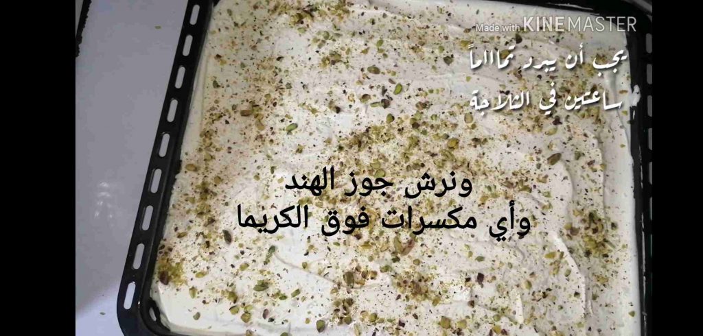 بنفرد الكريما فوق الهليط وبنرش جوز هند ومكسرات وبنتركها تبرد تماااماً.