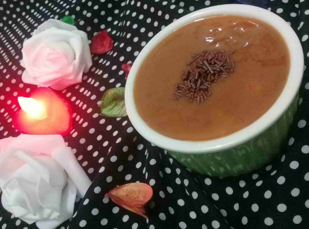 يصب بصحون أو زبادي ويقدم دافئا أو باردا حسب الرغبه