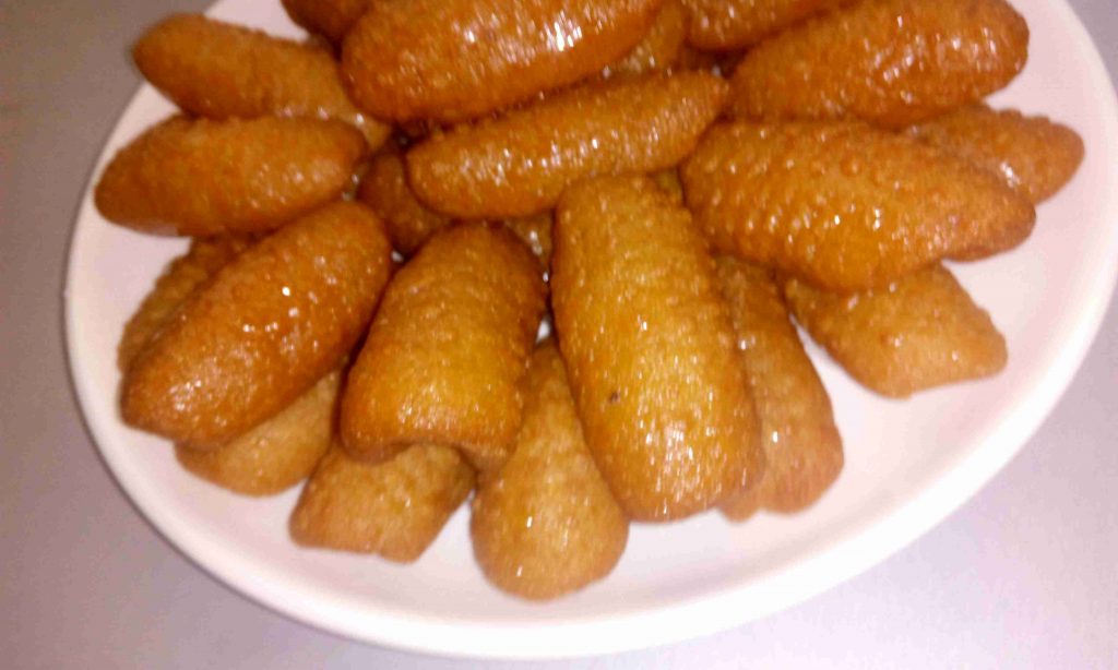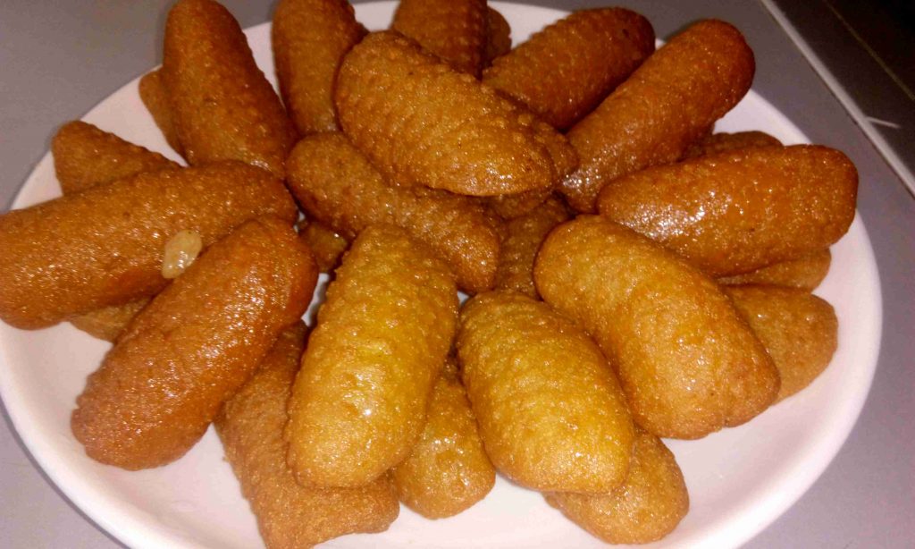 وبعدين منحمي الزيت عالنار وبعد ماتحمها منحط العجينة بالزيت عالنار هادية وبعد ما يطلع معك الون الأشقر بتصفي من الزيت وبتضيفي عالقطر بعد مايبرد