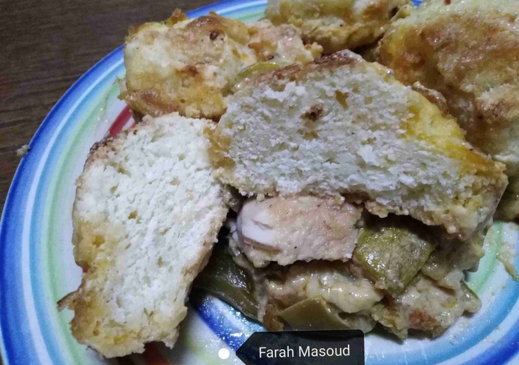 يضاف صدور الدجاج لتقرب تستوي يضاف الخضار و مكعب مرق الدجاج و رشة ملح و فلفل اسود و توم باودر و بصل باودر و بابريكا حلوة و بهارات الكيجن ويقلب يضاف الكريمة و الجبنة تصب بالجاط و يوزع عليها البسكوت و تدخل لفرن حامي من قبل درجة ١٨٠ من الوسط بدها ٢٠ دقيقة لنص ساعة