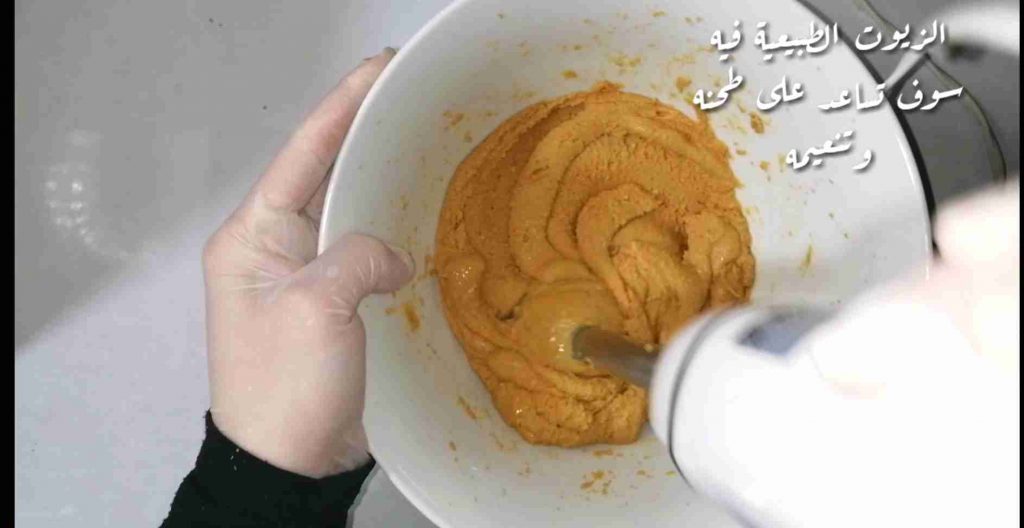 بنطحن الفول السوداني وبنستمر بالطحن ما نملّ لإنها بتاخد وقت يمكن عشر دقايق بدها وريحي الخلاط عشان ما ينحرق انه تشغلي وتطفي طحن متقطع يعني.
