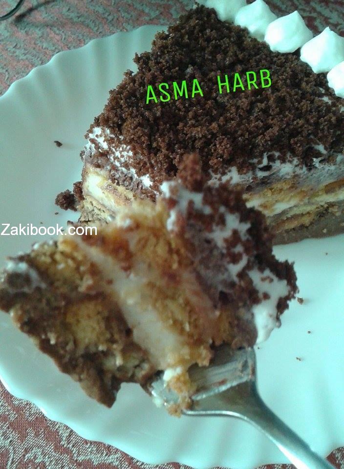 ومنطفي النار ومنخلطها مع باكيت البسكويت ومنحطها بقالب التشيز كيك وعلى الفريزر احتى تتماسك بسرعة وبعدها منسوي الطبقة 2 بنفس الخطوات وخليها لحتى تبرد منزينها بالكريمة ووالكيك المفتفت وصحتين وعافية .