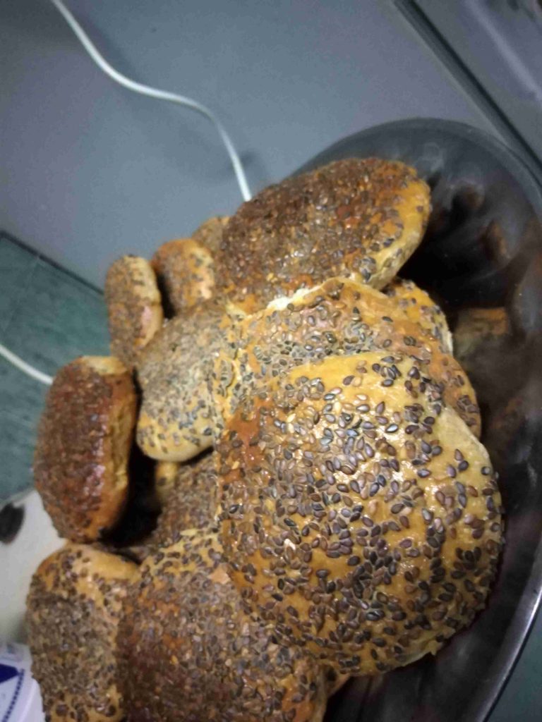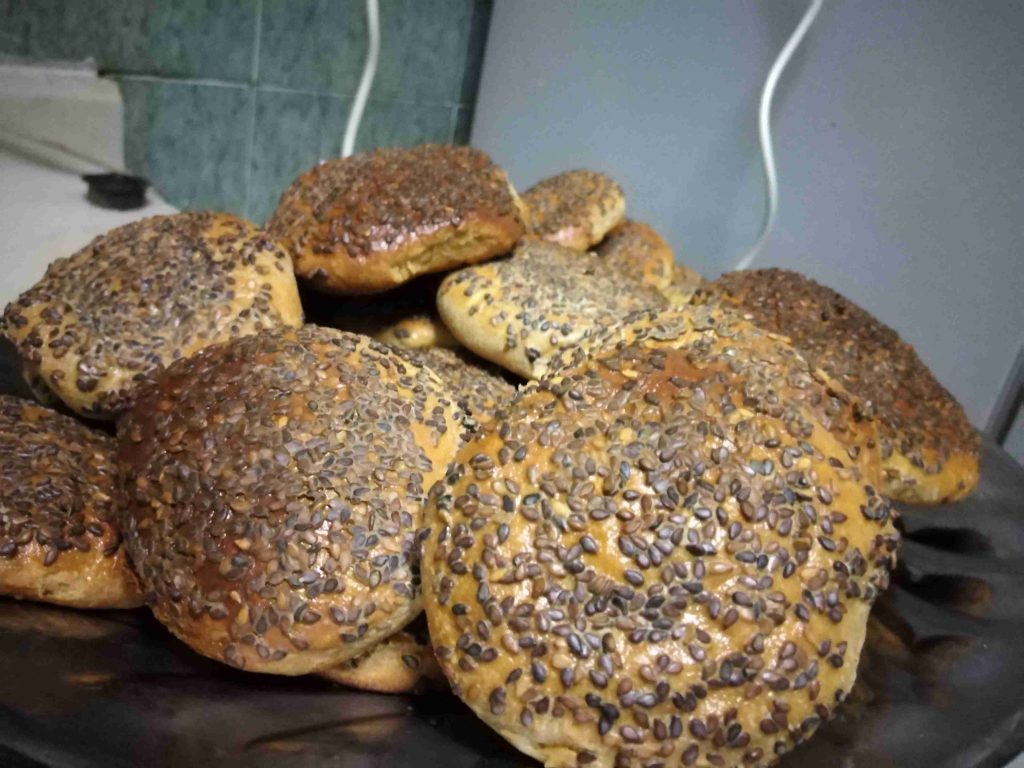الله نبدأ خلي كل المقدير دقيق وزيت وسكر حليب بودره والملح وسمن او زيت سمسم اللي بيكون متوفره معاك كلها سوا وافركي في اليدك مع كل المقدير عشان زيت مايصير في مكان واحد بعدين سوي شويه مويا لما تصير معاك عجينه بس تكون العجينه قاسيه ماتكون رطبه بعدين قطعيهن كرات صغار شغلي الفرن على حرارة 180 يكون من اول شي من تحت بعدين افردي العجينه مثل اللي في صوره في صحن الفرن خلي في بياله صغيره 4 معلاق حليب بودره مع مويا شويه لما يصير سال امسحي وجه العجينه في الحليب ورشي سمسم عليها واذا مافي سمسم عادي امسحي عليها حليب بس بعدين دخلي الفرن خليها حق 15 دقيقه شوفي اذا شفتي حمره من تحت شغلي عليها من فوق كي تحمر خذي بالك عليها عشان لا تحرق عليك
