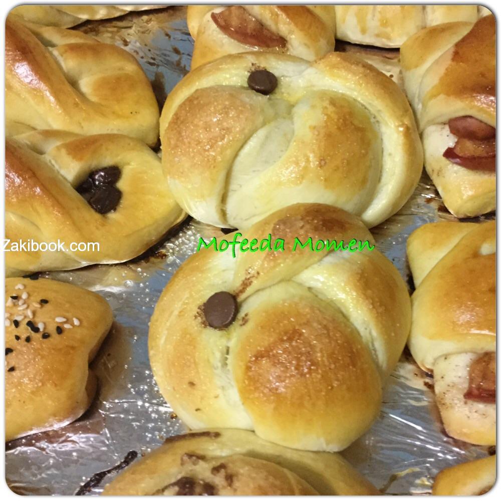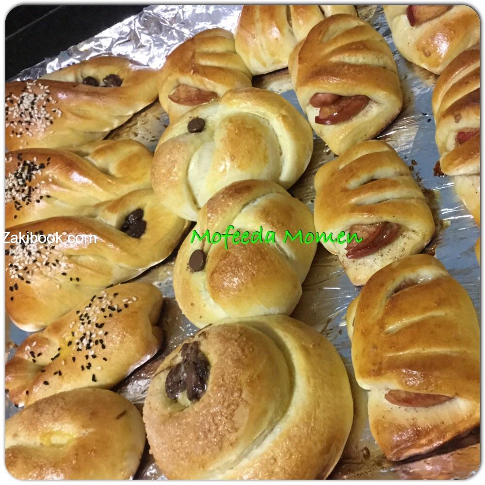 تذوب الزبدة والسكر في الحليب الدافئ ثم تضاف الخميرة ويقلب الخليط-ينخل الدقيق مع الملح ويصب خليط الحليب في الوسط ويغطي ويترك حتي تنشط الخميرة-يضاف البيض ويعجن حتي تتكون عجينة طرية وسهلة التشكيل-تترك تخمر وتقطع الي دوائر كبيرة