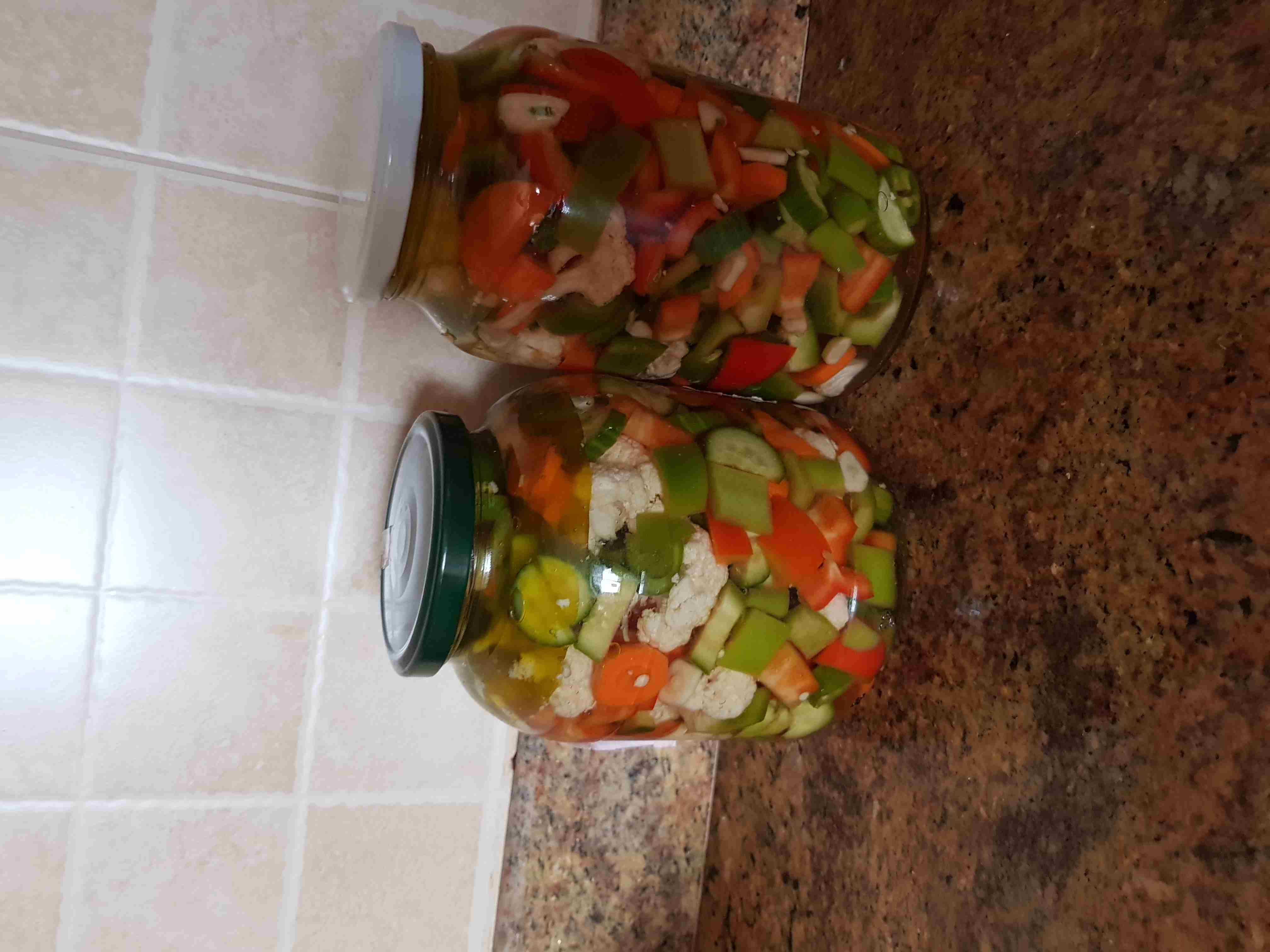 هاي وصفة المخلل المشكل …احكيلكم قصة هالمخلل ….آخ هالمخلل هادا قصته قصة يا جماعة زاكي هادا انا إصحيت الساعة ٤ الفجر مع بنتي الصغيرة وبعدين إستنيت الأذان وصليت الفجر وبعدين إجيت احط راسي وأنام بحكم انه الجو بارد بس الله وكيلكم ما أجاني نوم وبما انه الست بنتي جرجرتني عالمطبخ بحكم انها جوعانة فأنا حملت الصوبة على كتفي متل الرحالة وإنزلت عالمطبخ وماسكة بإيدي التانية إيد بنتي ورايحين نكزدر عالمطبخ وانا يا حبيباتي ماشية متل الدب القطبي ….بحكم إني لابسة نص الأواعي إلي بالخزانة …مهي الدنيا بررررررررررررد …….ما رح أطول عليكم بهالسيرة المهم فتحت التلاجة الا بنتي بدها فليفلة ودغري أجت على بالي هالمخلل…….