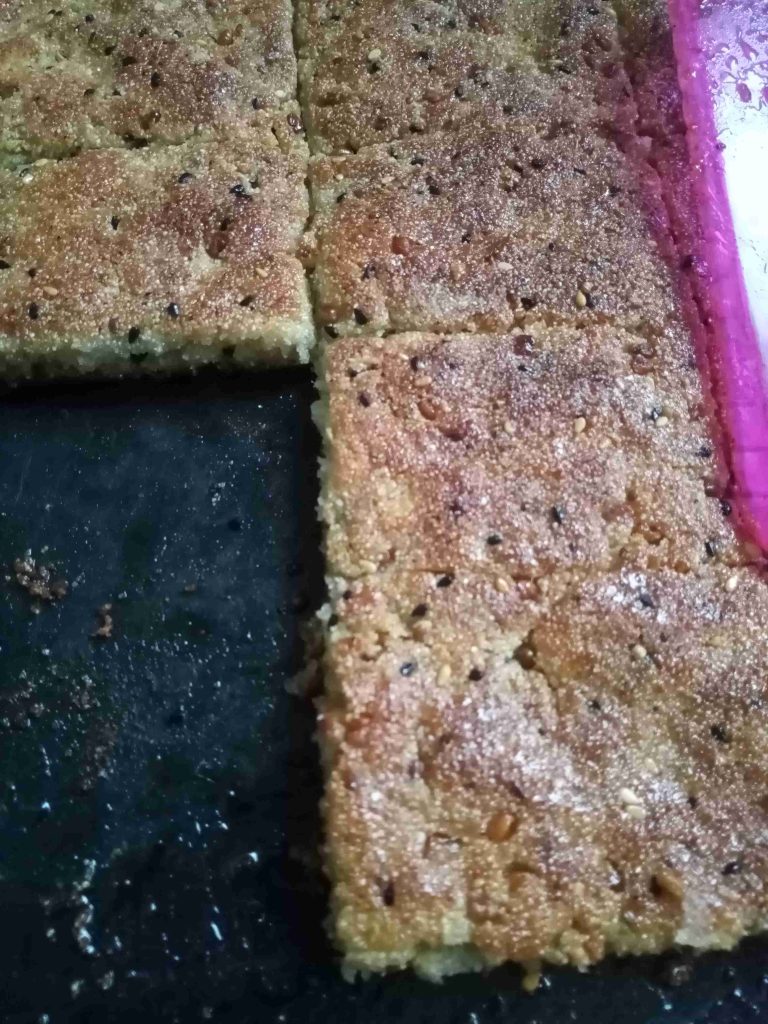 بعد ماتتخمر ونفردها بالصينيه بنقطعها حسب الرغبه.. بس نشوف الاطراف اتحمرت بننقلها تحت الشوايه لتوخد اللون المطلوب