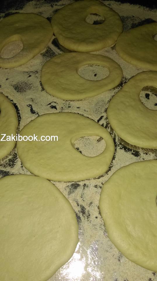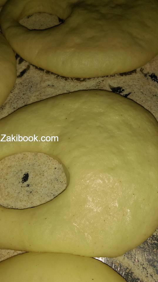 بعد اختمار الخلطة الأولى نضيفها إلى الخليط الثاني مع كوبين ماء دافئ أو حسب استيعاب الطحين ونعجن جيدا ونتركها نصف ساعة ثم تشكل كرات ونتركها ترتاح عشر دقائق ثم نفرد الكرات ونقوم بقطع جزء من الجانب بقطاعة وممكن تركها كما هي وتوضع في صينية مرشوشة بالنخالة وعند انتهاء الكمية نغطي الكعكات بقطعة كبيرة من النايلون ثم فوطة قماشية نظيفة ونتركها في مكان دافئ حتى يتضاعف حجمها