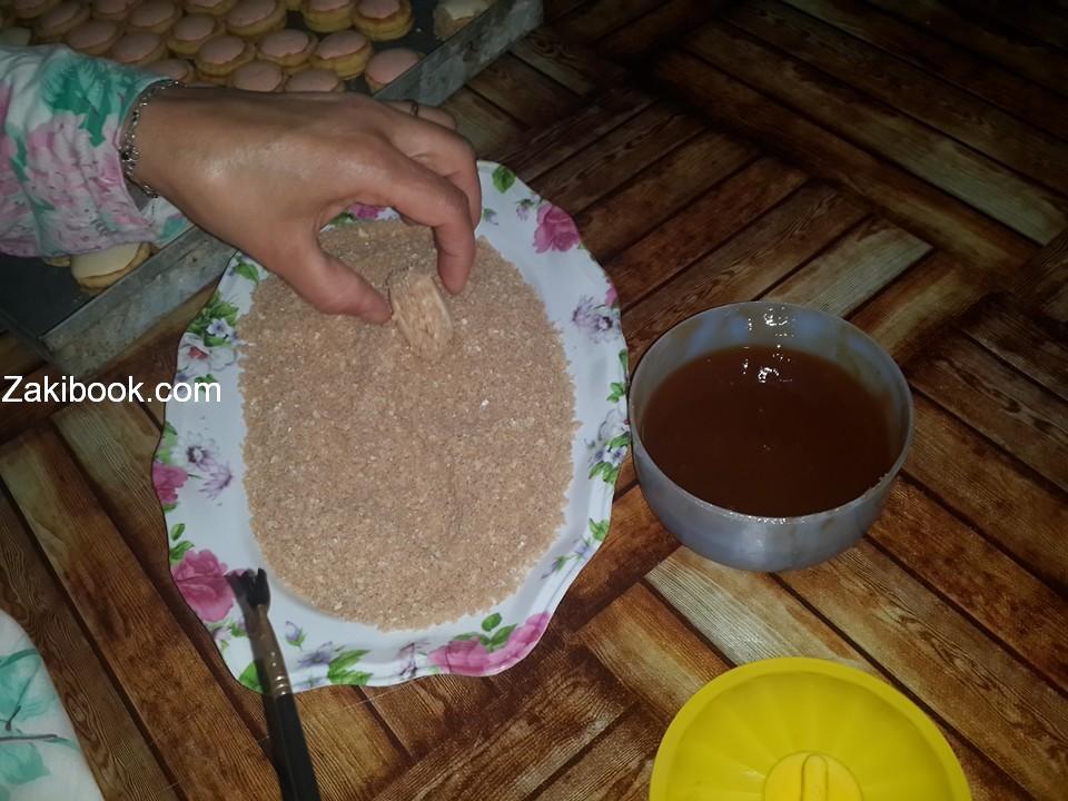 ثم نزينهم بالكوفريت المطحون أو بمطحون الكوك أواللوز أو حسب الرغبة .