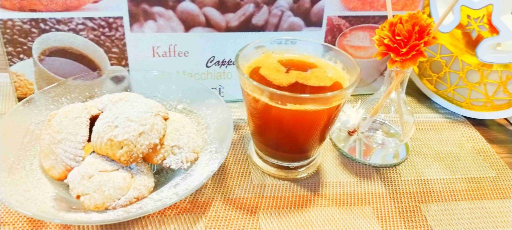 وتذوقو هذه الرشفات التي ستعيدكم لمطحنة الجدات الحجريه ولريحة رمضان عند المغرب والناس تتهافت للمسجد كلا يحمل فطارا شهيا حامضة الحلبة الحلوه والتمرة المباركة والفاكهة الطازجه والخضار التي ترسم لوحة جميله على الطبق وريحة ساحرتنا قهوة المحوّج تصل للجيران